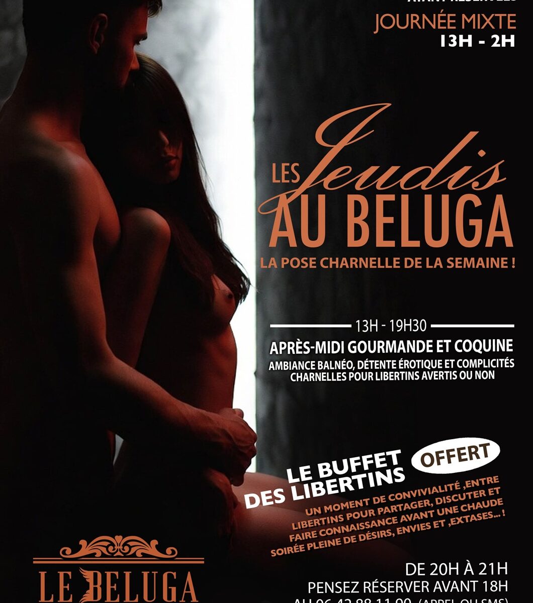 13h – 19h30 : Après-midi gourmande et coquine, ambiance Balnéo, détente érotique et complicités charnelles pour libertins avertis ou non.