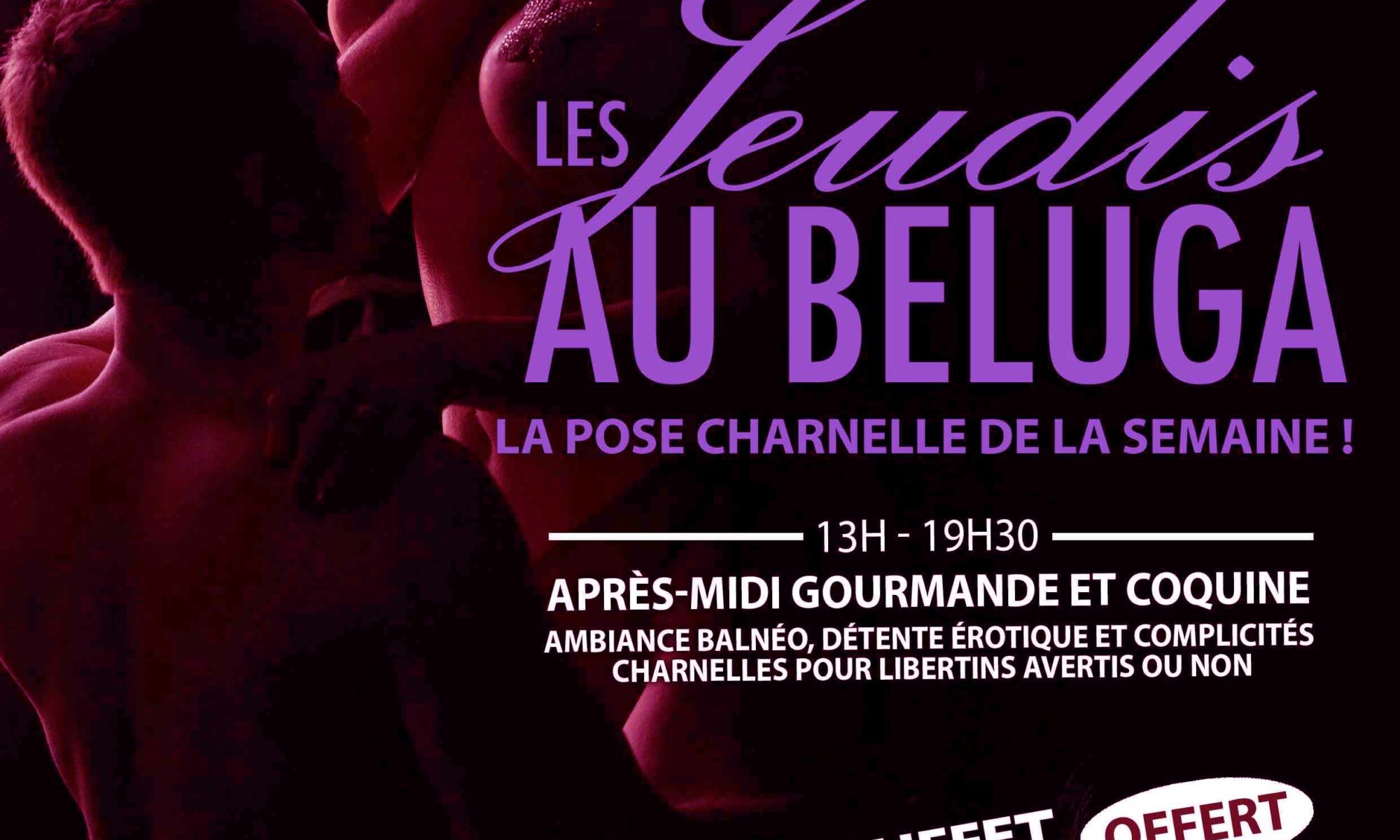 13h – 19h30 : Après-midi gourmande et coquine, ambiance Balnéo, détente érotique et complicités charnelles pour libertins avertis ou non.